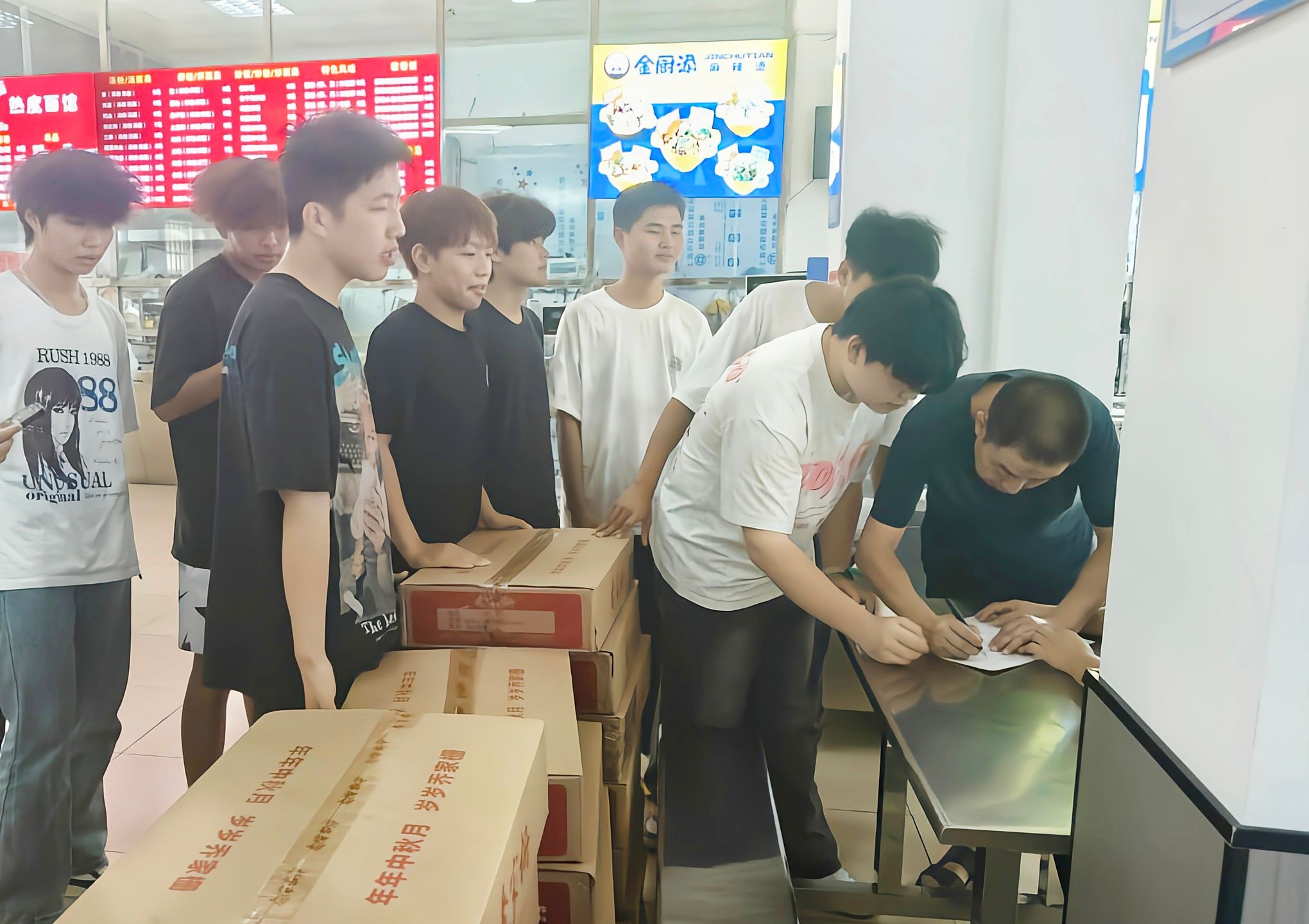 为传承中华优秀传统文化、传递学校对学生的关怀,国庆中秋双节前夕,食堂以班级为单位,为同学们发放了暖心中秋月饼。无论是经典的豆沙馅,还是清新的果味馅,都能让同学们在品尝甜蜜时缓解思乡之情。同学们手捧这份节日礼物,脸上洋溢着喜悦之情,校园里也弥漫着节日的氛围。