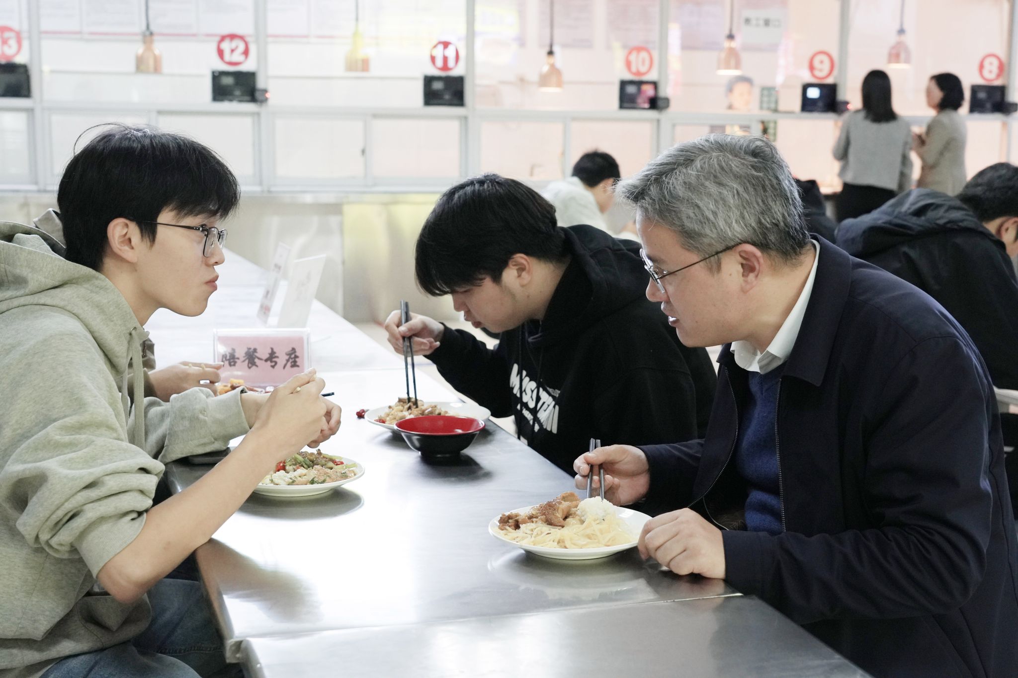 傍晚,花严红与青年学子共进晚餐。他关切地询问学生食堂卫生、饭菜口味、菜品价格等情况,要求职能部门严格把控食品安全关,注重膳食均衡,让同学们吃得健康、吃得放心。随后,花严红来到学生宿舍,与同学们唠起了“家常”。“饭好吃不好吃?”“住得还习惯吧?”“多跟父母通通电话。”一句句暖心话语迅速拉近了师生距离。他仔细查看宿舍卫生、安全设施等状况,提醒同学们养成良好的生活习惯,增强安全意识。